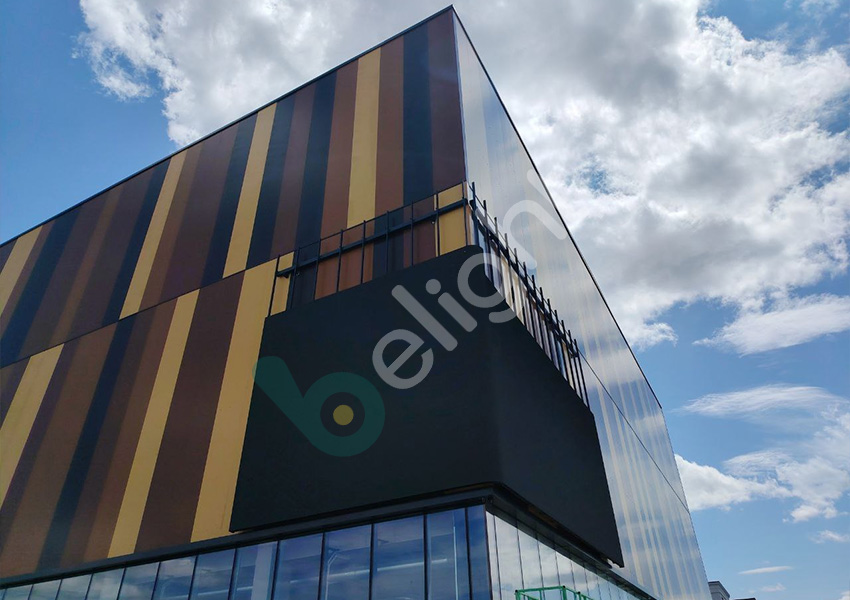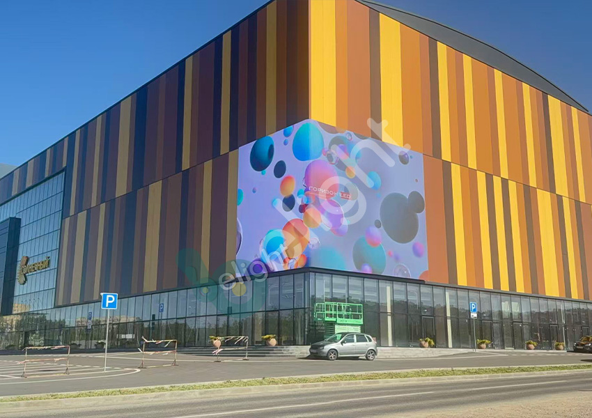 200sqm of P6.6mm outdoor LED display, front service with 90 degree corner. Brightness 6500nits.